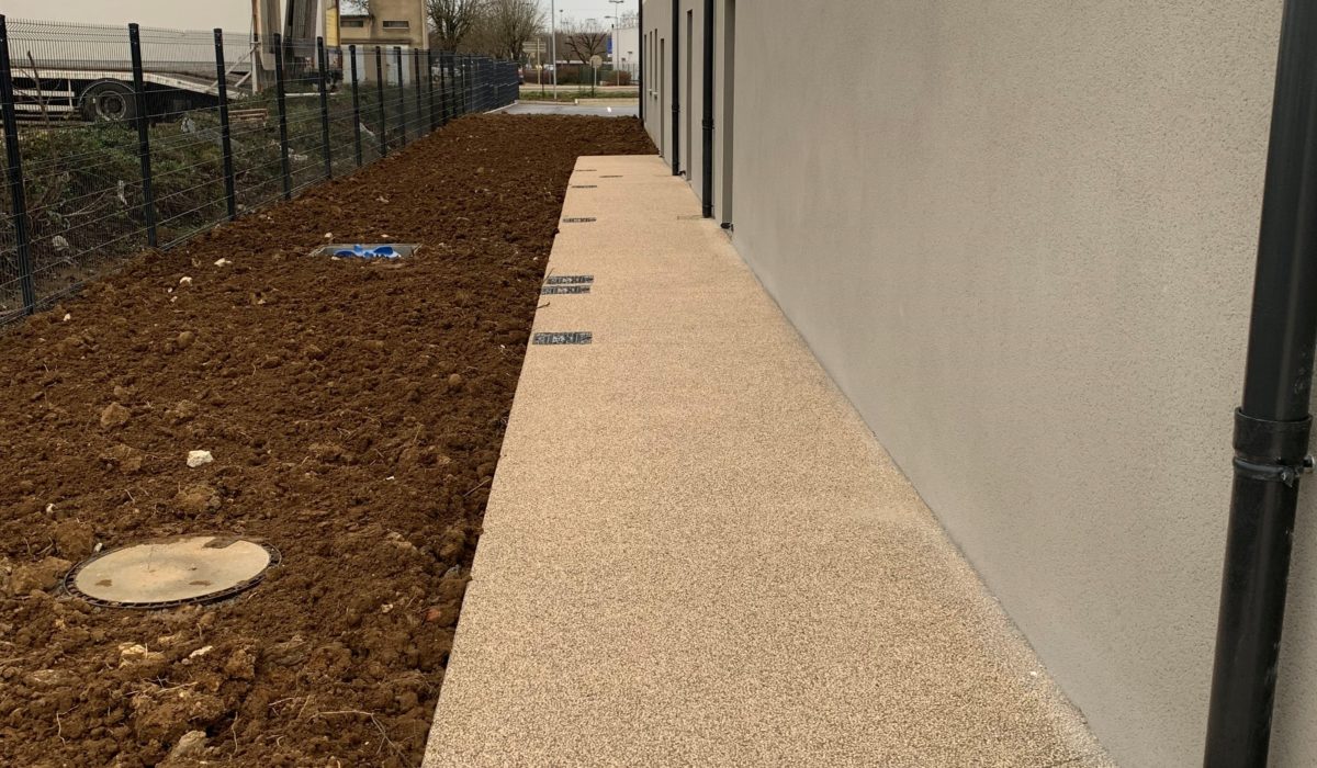 - bordures béton : 408 ml, réglages : 3525,36 m², enrobés : 2402,50 m², béton désactivé : 163,70 M², dalles engazonnées : 211 m²